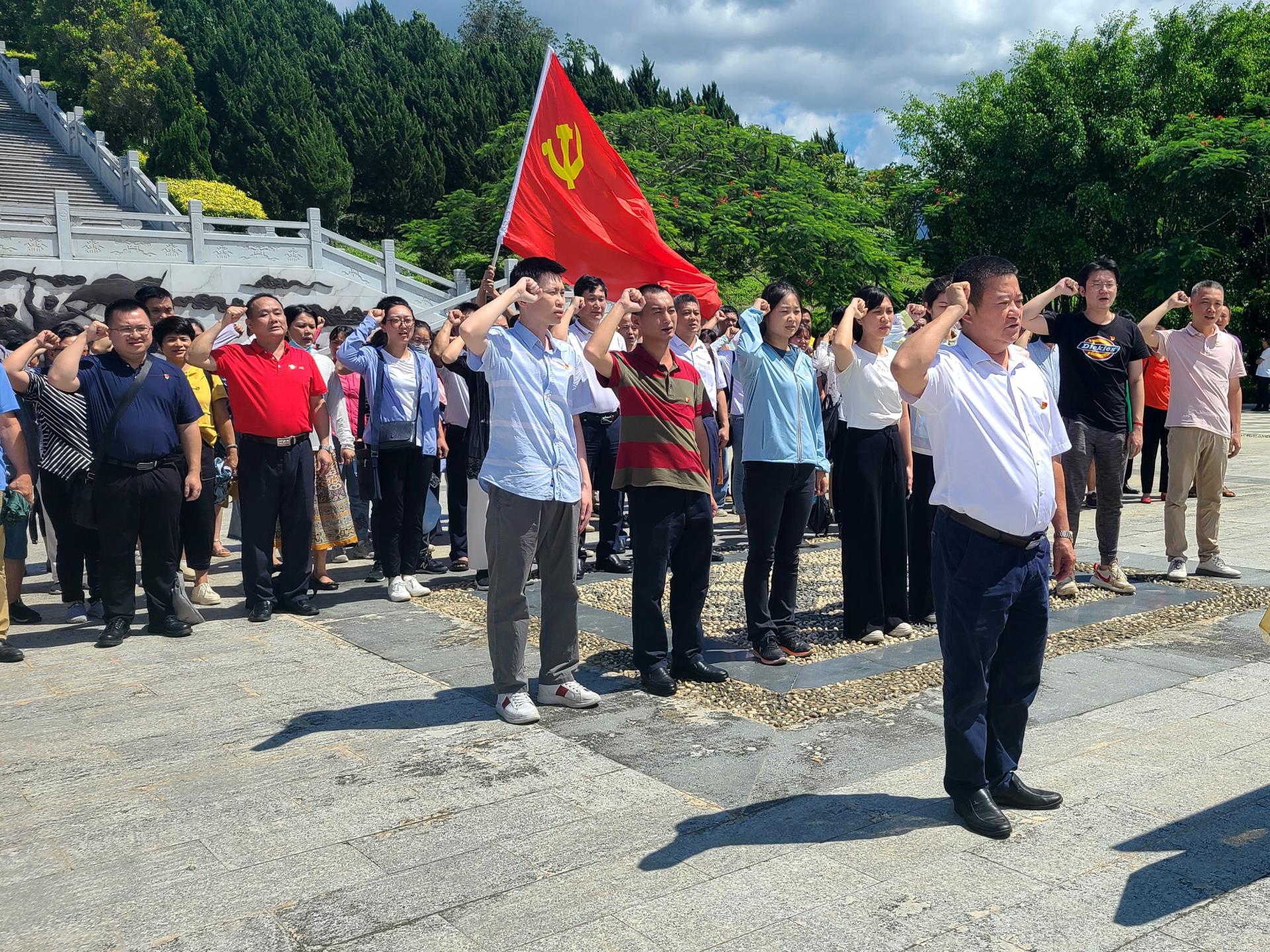 6月17日,省安宁医院组织党员前往五指山革命根据地纪念园,开展庆祝建党100周年暨“七一”主题党日活动,旨在重温革命历史、缅怀革命先烈,追寻初心、锤炼党性,进一步深化党史学习教育成效,以红色信仰激发担当作为精神和工作热情,走好新时代高质量发展之路。省安宁医院党委书记林展、院长朱洪,党委副书记陈文涛、副院长韩天明及全体党员101人参加活动。